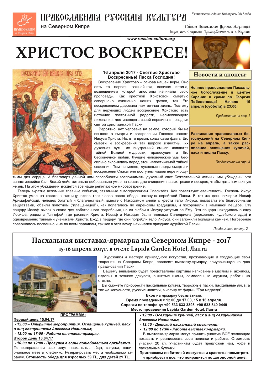 Газета «Православная Русская Культура на Северном Кипре»