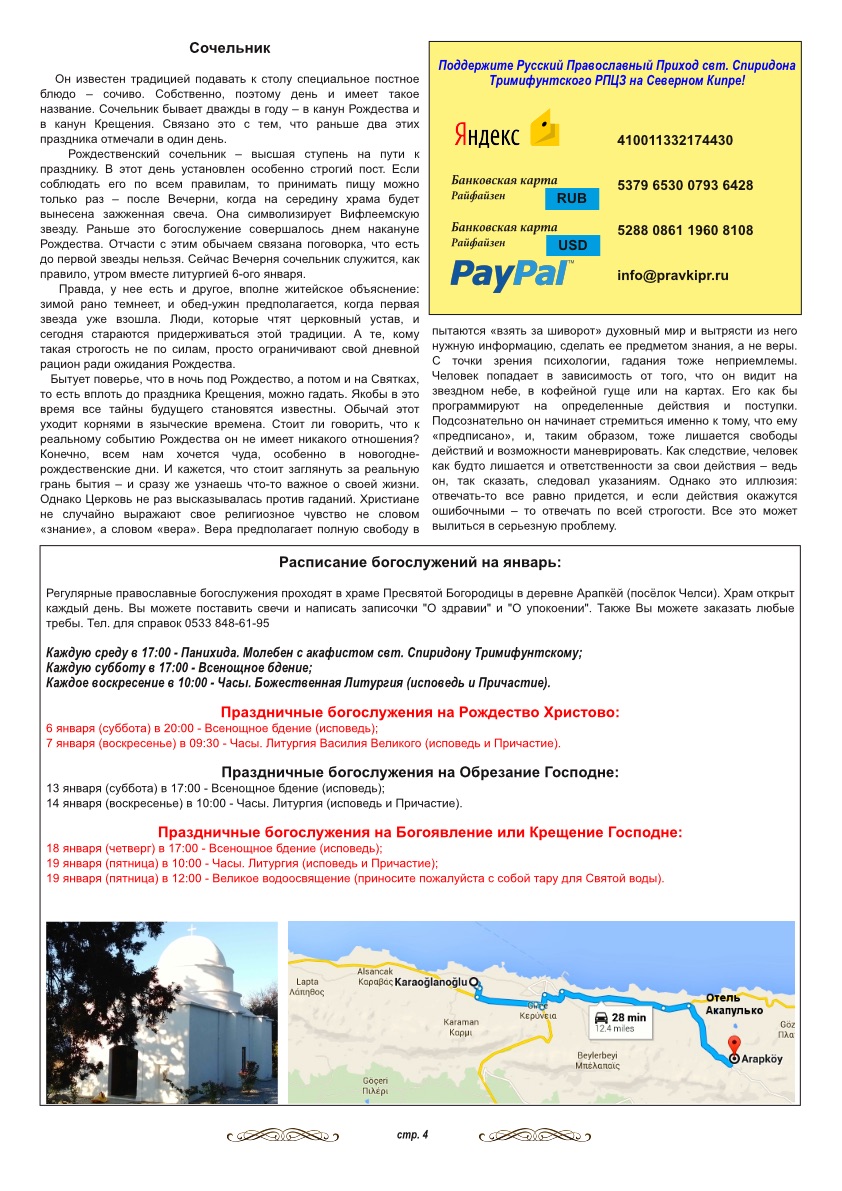 - расписание православных богослужений на Северном Кипре.