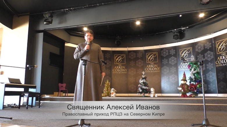Настоятель русского православного прихода РПЦЗ во имя свт. Спиридона Тримифунтского на Северном Кипре, священник Алексей Иванов поздравил собравшихся с Рождеством Христовым и вручил памятные грамоты от лица православного прихода и Благотворительного Фонда поддержки русской православной культуры за границей "Византия" директору и педагогам ЦТРИ при "Арт-Студио" за вклад в сохранение русской культуры и традиций на Северном Кипре. Грамоты получили Юлия Сопилюк-Волковой, Татьяна Хамзина, Людмила Карачун и Тамара Яновская.